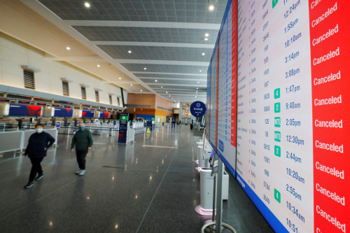 American, Delta and United all canceled about 20% of flights on Monday. The blizzard dropped more than 2-1/2 feet of snow (76.2 cm) across parts of the U.S. Northeast.